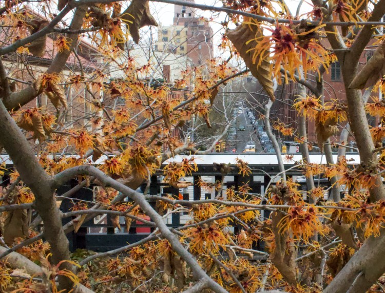 Continuing along the High Line, I found some trees overlooking the street below. I tried the largest (f/3.5) and smallest (f/22) aperture that the camera allowed, and experimented with the exposure and ISO. I didn’t realize how cold the camera would get, plus I forgot my gloves at home, so my shaky hands were a real bummer. It wasn’t too cold, maybe like 35°F, but the wind made it much worse.